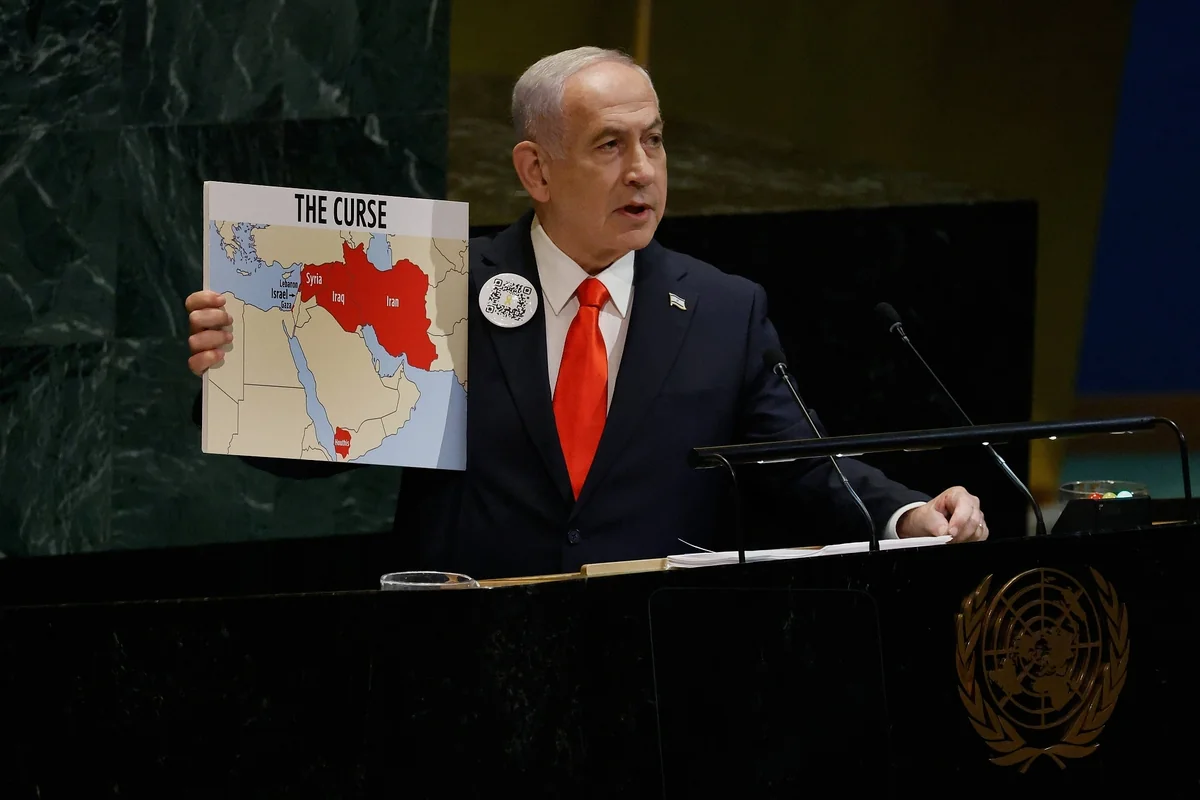 Passend dazu zog Netanjahu, wie schon so oft, wenn er vor der UN-Vollversammlung spricht, eine Karte hervor. Die Überschrift: „Der Fluch“. Darunter abgebildet die Proxies des Iran: Die Hamas in Gaza, die Hisbollah im Libanon, die Houthis im Jemen. Einer nach dem anderen hakt er die Akteure ab: „Erledigt“, sagt Netanjahu: „Erledigt und auch erledigt.“