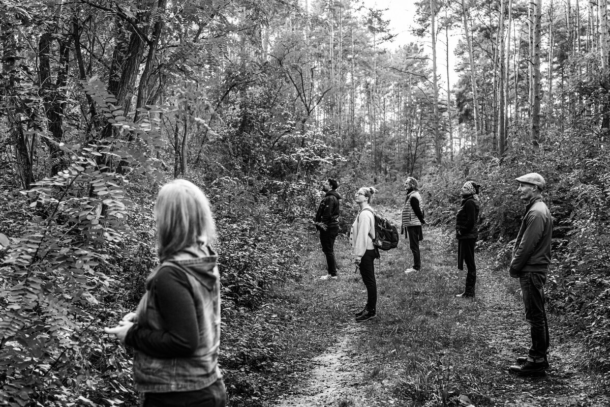 Das heißt nichts anderes, als dass wir in einem Jahrhundert des Lärmens leben. Es lärmen die Handys in der Bahn, die Schreihälse in den sozialen Medien, die aufgetunten Autos auf den Landstraßen. Insbesondere aber lärmt die Stadt. Das zumindest ist die Erfahrung von Eileen Froelich. Es sind vor allem Menschen aus Berlin, die zum Waldbaden kommen, das die zertifizierte Kunst- und LOM-Therapeutin anbietet. Wie lässt sich die äußere Unruhe so weit reduzieren, dass die innere Stimme wieder hörbar wird? Ganz einfach sei das nicht, erzählt Froelich dem Kursbuch-Autor Nicolas Flessa: „Wenn es ruhig wird, wird es laut im Kopf.“