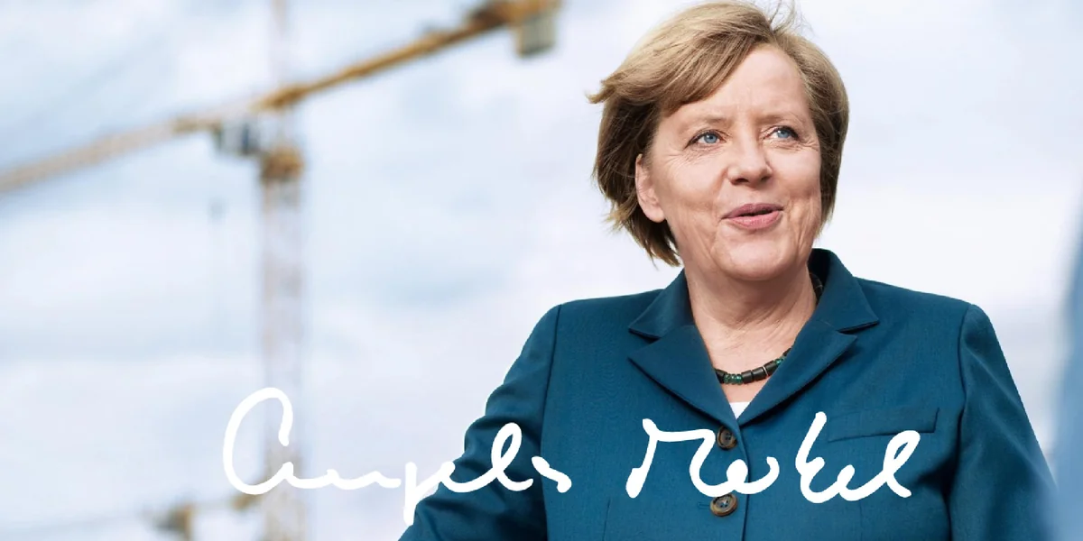 Kleine Textkästen laufen über großflächige Bilder: Angela Merkel als Kleinkind mit Puppenwagen, Angela als Bundesministerin für Frauen und Jugend, Angela mit Ehemann Joachim Sauer. Außerdem wandert sie offenbar gern, besucht auch mal die Oper und zieht Gemüse im eigenen Garten.
