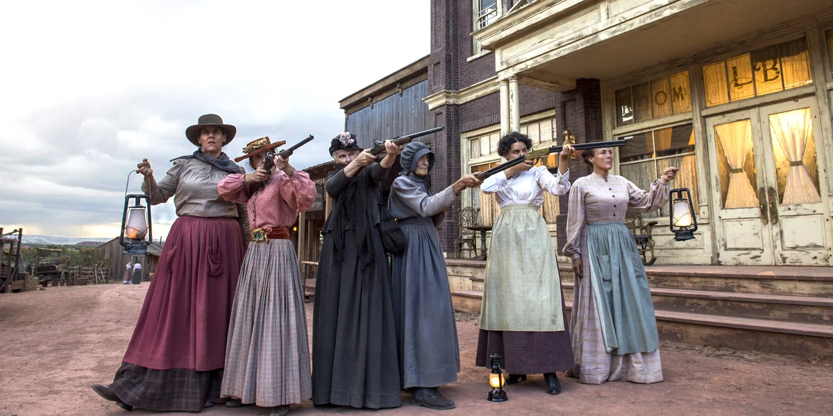 Also wird das Kaff La Belle praktisch ausschließlich von Frauen bewohnt, nachdem fast alle Männer bei einem Minenunglück umgekommen sind. Also spielt (es möge die LGBT community freuen) Merritt Weaver eine Bürgermeisterwitwe, die wort- wie sprichwörtlich die Hosen an hat. Also gibt es da, in der Nachbarschaft, die einst von Bob Marley besungenen schwarzen Buffalo Soldiers. Also hat man seine Zeitgenossenschaft hinreichend unter Beweis gestellt, um sich umso hemmungsloser bei den altbekannten Mythen und Motiven zu bedienen.