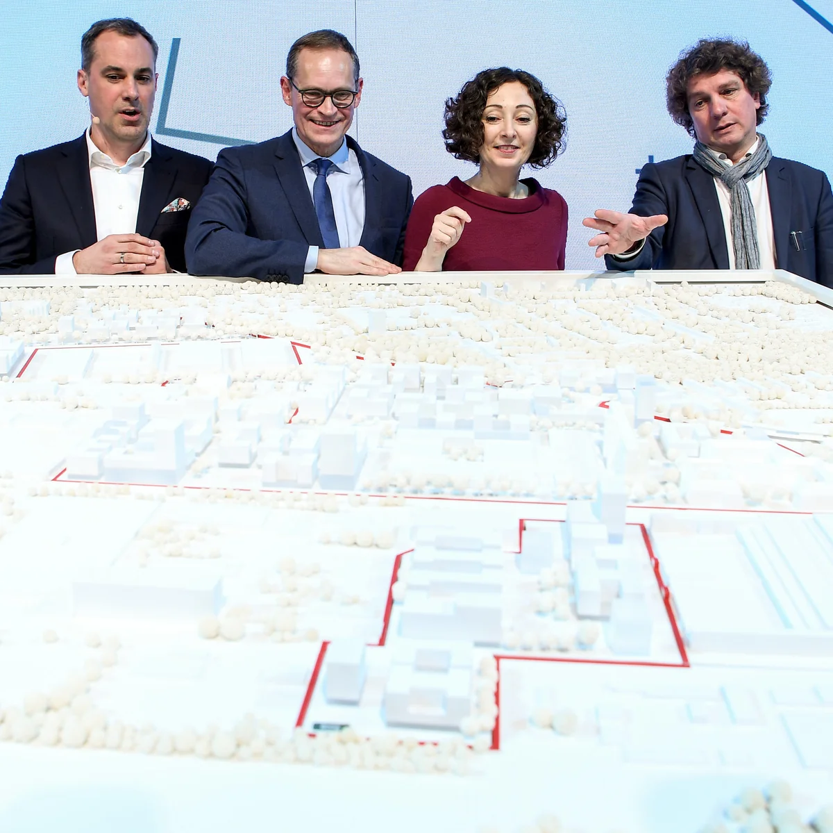 Aber auch so ging bislang fast alles reibungslos. Im August wurden 18 Architekturbüros aufgefordet, sich am städtebaulichen Wettbewerb zu beteiligen. Im Dezember hat Stadtentwicklungssenatorin Lompscher den Aufstellungsbeschluss für den Bebauungsplan verabschiedet. Nachdem der Siegerentwurf nun ausgewählt ist, folgen im Frühjahr die Architekturwettbewerbe für die einzelnen Gebäude.