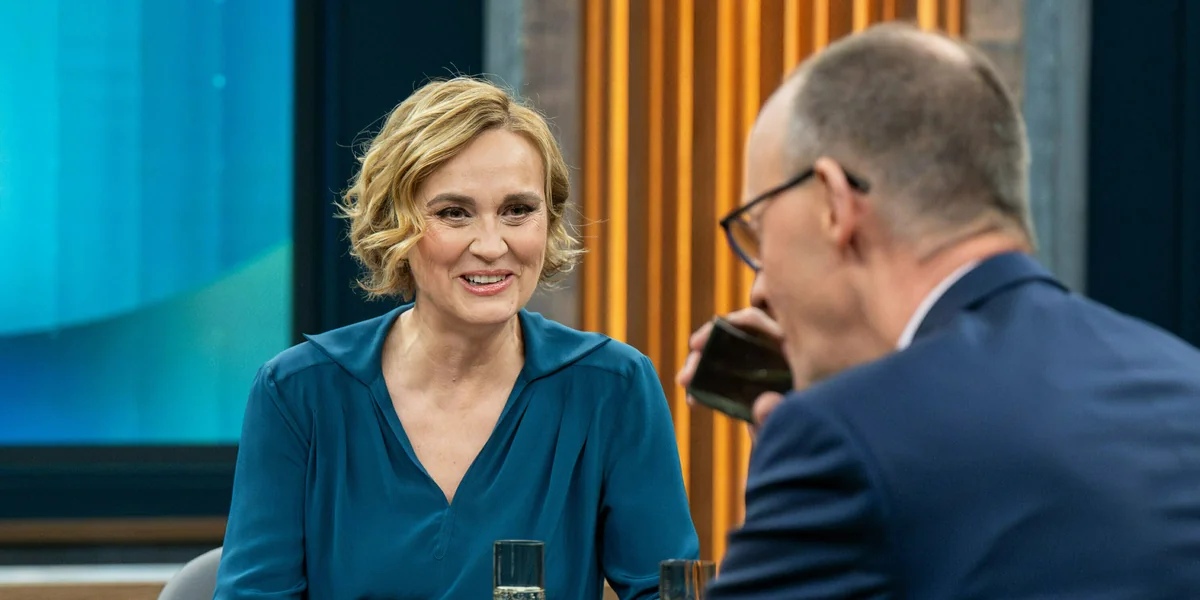 Völlig erschöpft von den mäandernden Kamerafahrten, beginnt man den Blick auf ruhende Accessoires wie die klobigen Wasserflaschen auf dem Tisch zu lenken, bis plötzlich völlig unerwartet ein rhetorischer Blizzard durchzieht: Journalistin Anne Hähnig. Die Redaktionsleiterin der Zeit im Osten haut in guten drei Minuten den CDU-Vorsitzenden alles um die Ohren, was Caren Miosga vorher umschifft hatte. Cooler Auftritt!