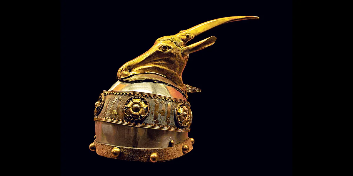 Im Wiener Kunsthistorischen Museum gehen die meisten Leute achtlos an dem goldenen Helm vorbei, dabei sieht das mit allerlei Metallverzierungen beschlagene Ding ziemlich skurril aus. Auf dem Scheitel ist ein Ziegenkopf aus vergoldeter Bronze montiert, was den Helm wie eine Requisite aus „Game of Thrones“ aussehen lässt. Die gehörnte Kopfbedeckung wird aber dem albanischen Volkshelden Skanderbeg zugeschrieben, auch wenn jener Fürst, der im 15. Jahrhundert gegen die Osmanen kämpfte, den Helm vermutlich weder getragen noch besessen hat.