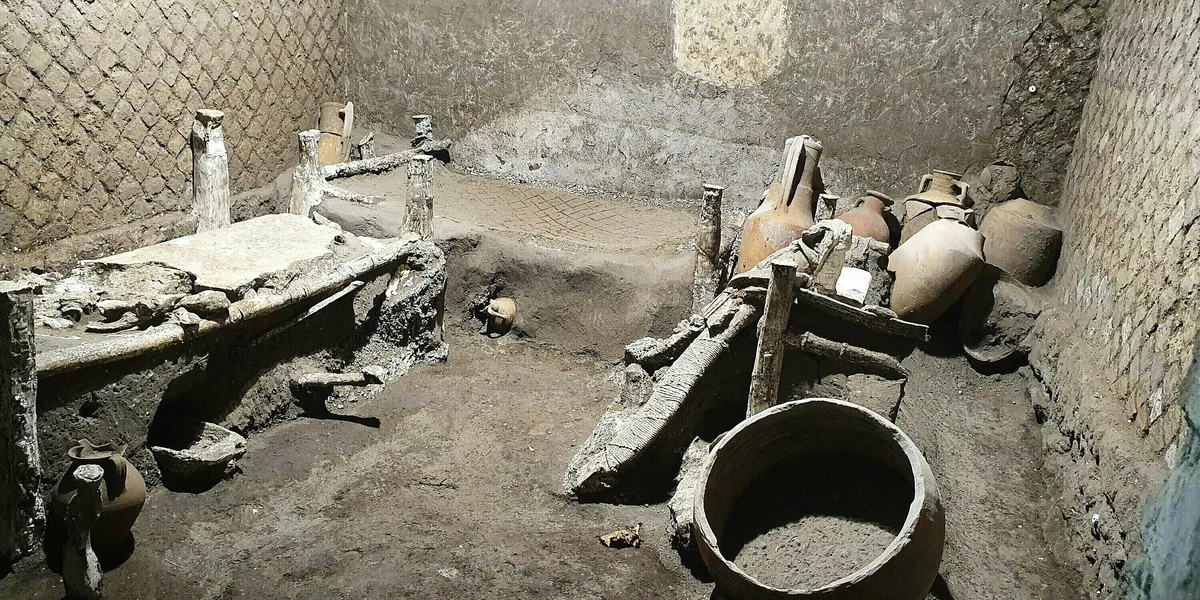 Neues vom Fuß des Vesuv: Archäolog*innen haben ein Zimmer entdeckt, in der Sklav*innen schliefen. Es diente auch als Abstellkammer.