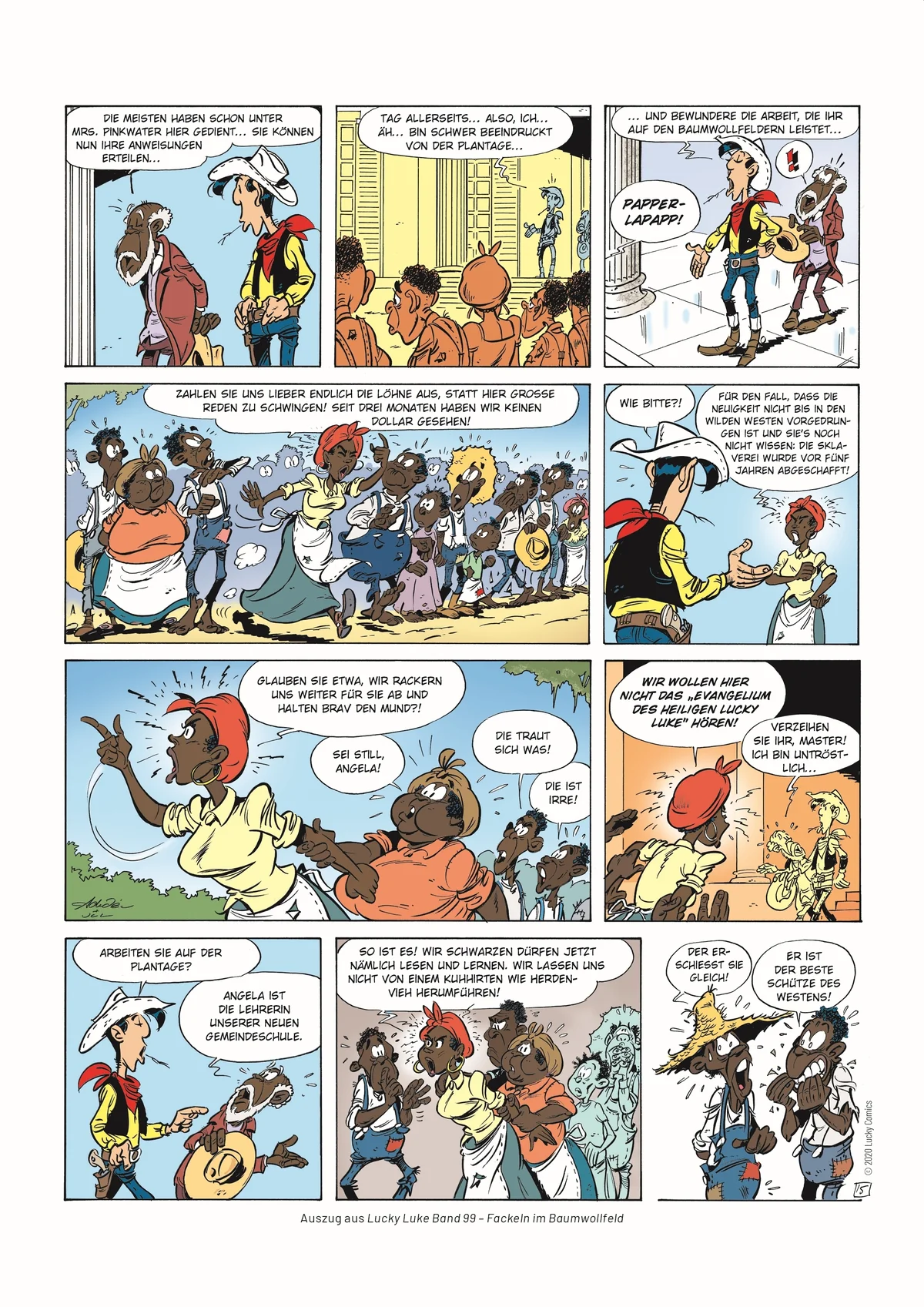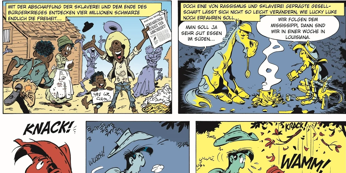 Der Western-Comic-Held Lucky Luke reitet nun schon seit über 70 Jahren durch den Wilden Westen, seit sein Schöpfer Morris ihn 1946 im Spirou-Magazin einführte. An das Thema Rassismus wagte sich der 2001 verstorbene Zeichner nicht heran, vielleicht, weil er es sich in einer vorwiegend für Kinder konzipierten Westernparodie nicht vorstellen konnte.