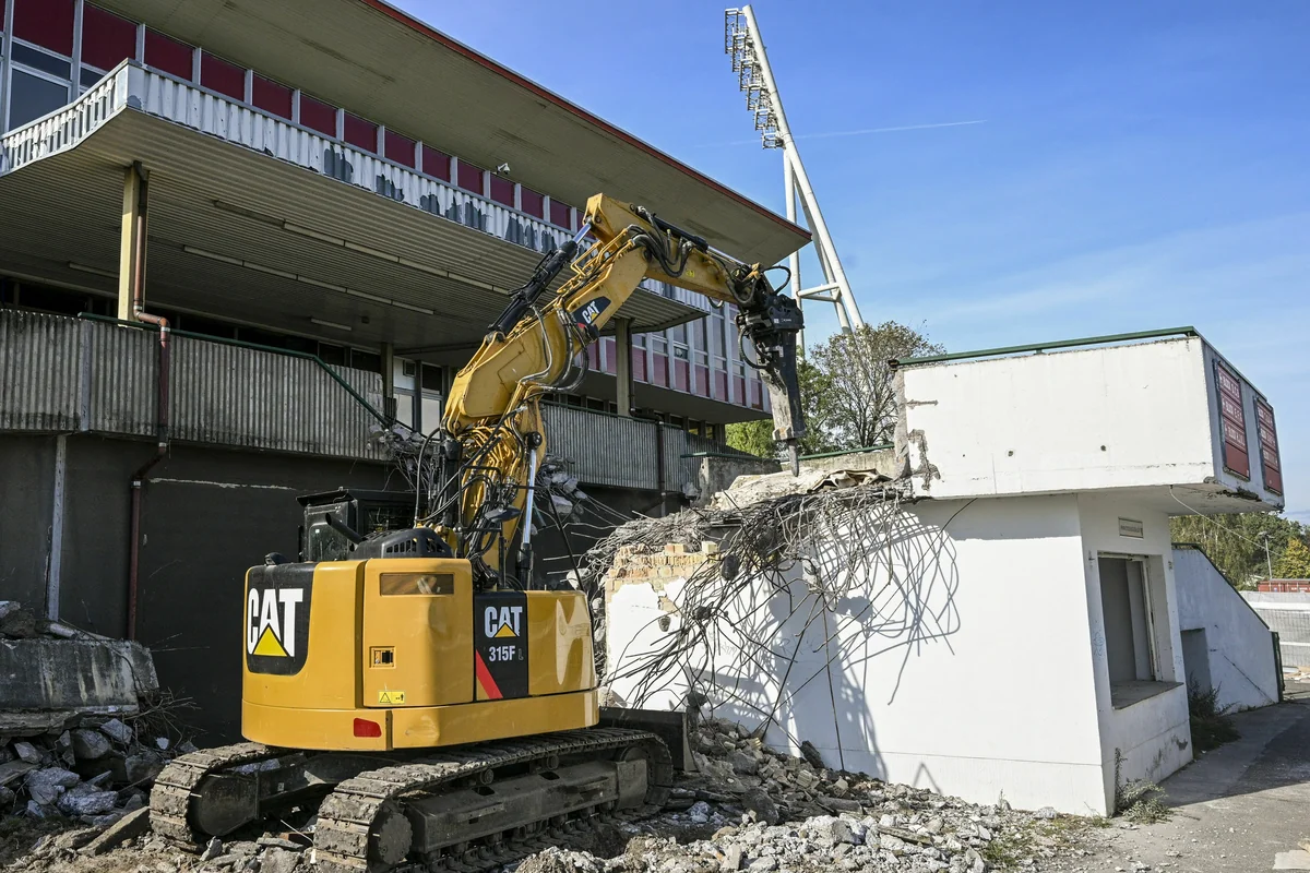 Die Spatzen haben es schon von den Dächern gepfiffen. Nach den Abrissarbeiten an der Osttribüne sollte nun mit dem Abruch der Tribüne im Westen begonnen werden. Gaeblers Verwaltung rechtfertigte das damit, dass für die Spatzen dort zusätzliche Nistkästen angebracht worden seien, die als Ausgleich dienten.