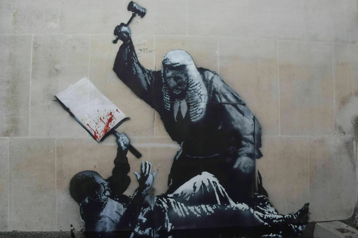 Banksy hat mal wieder einen Coup im Kampf um den öffentlichen Raum gelandet. In London trotzt das Gemälde der Justiz- und den Putzmitteln.