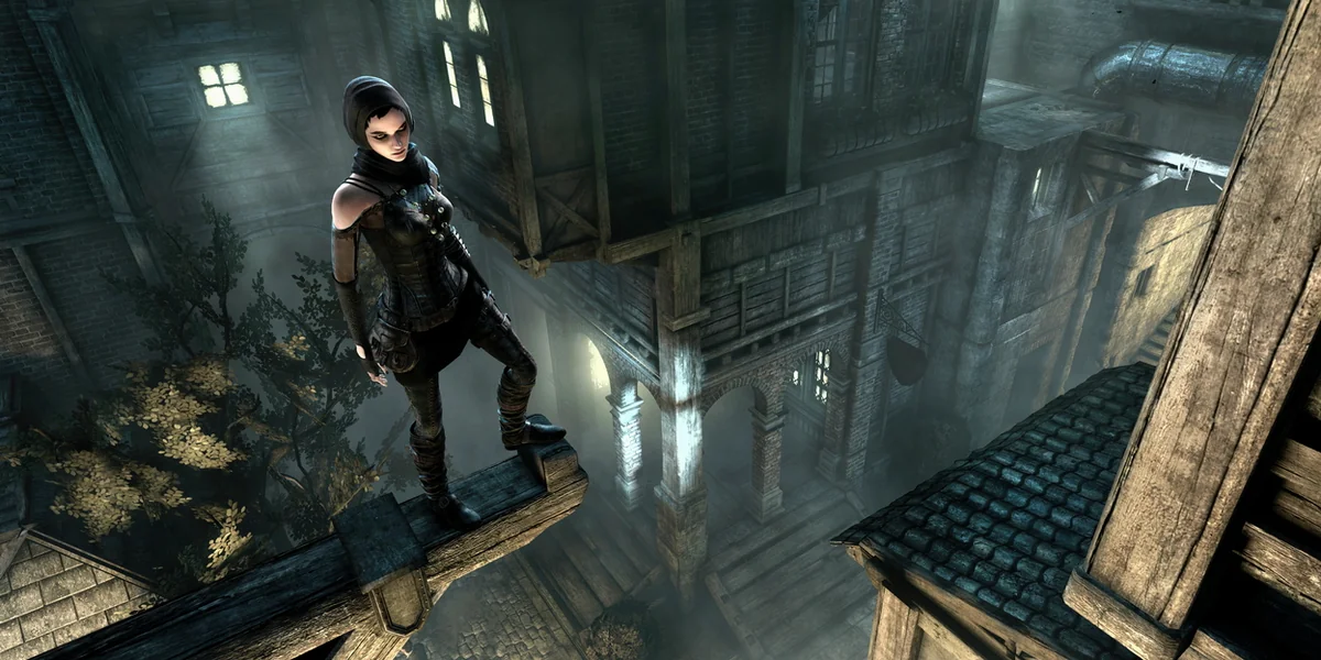 Dicker Rauch wallt über einer Fabrik, ausgemergelte Körper hängen an Fleischerhaken und Wachmänner versichern sich gegenseitig polternd, sie würden hier nur Befehle ausführen. Ein Baron und seine Lakaien terrorisieren eine Stadt, die in eine Zeit zwischen Mittelalter und Moderne gebaut ist. Gegen die Tyrannei streitet ein Krimineller aus der Gosse, ein Mann namens Garrett.