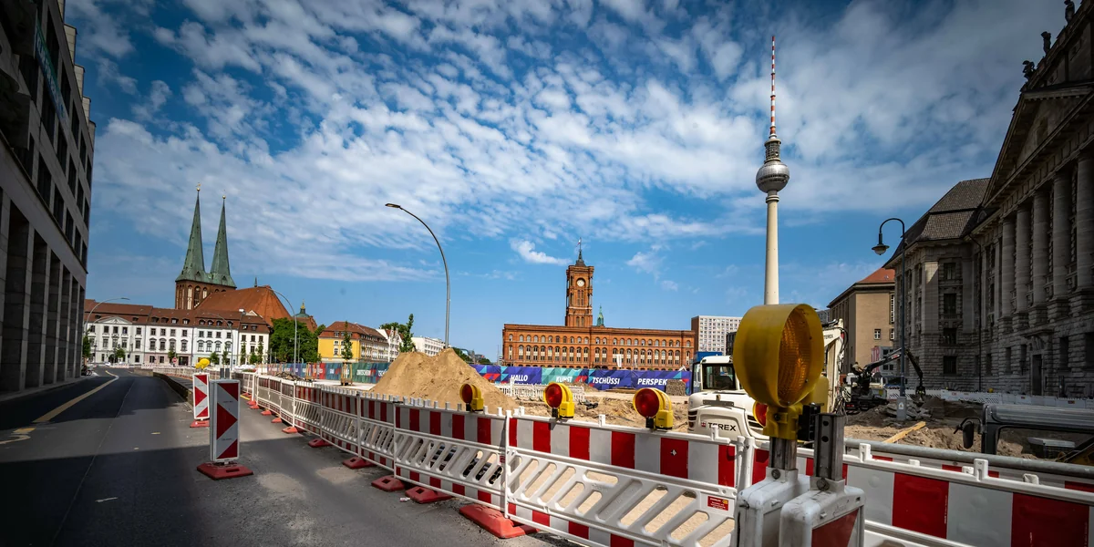 Wer eine Runde um das abgezäunte Areal dreht, könnte kurzzeitig an der Reihenfolge von Gaeblers Plan zweifeln, denn auf dem Platz sind bereits intensive Bodenarbeiten im Gange. Wie kann das gehen: erst mit den Arbeiten beginnen, dann einen Plan beschließen? Doch auch wenn sie imposant wirken, handelt es sich dabei lediglich um die 2019 begonnenen archäologischen Grabungen, wie Gaebler ausführte – immerhin ist der Molkenmarkt ein Ort der Berliner Stadtgründung. Bis ins Jahr 2024 würden sie noch dauern. Die parallelen Arbeiten sollen an der Grunerstraße bis Ende des Jahres abgeschlossen sein.
