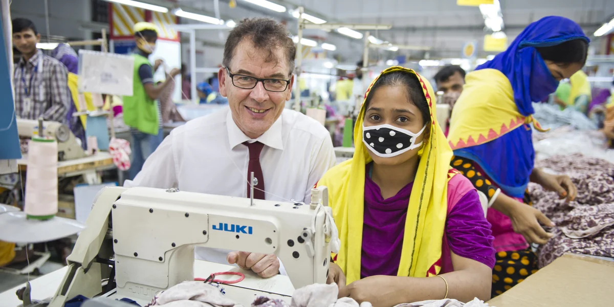 Oktober 2015: Entwicklungsminister Müller beim Besuch einer Textilfabrik in Gazipur (Bangladesch) Foto: imago/Michael Gottschalk/photothek.net