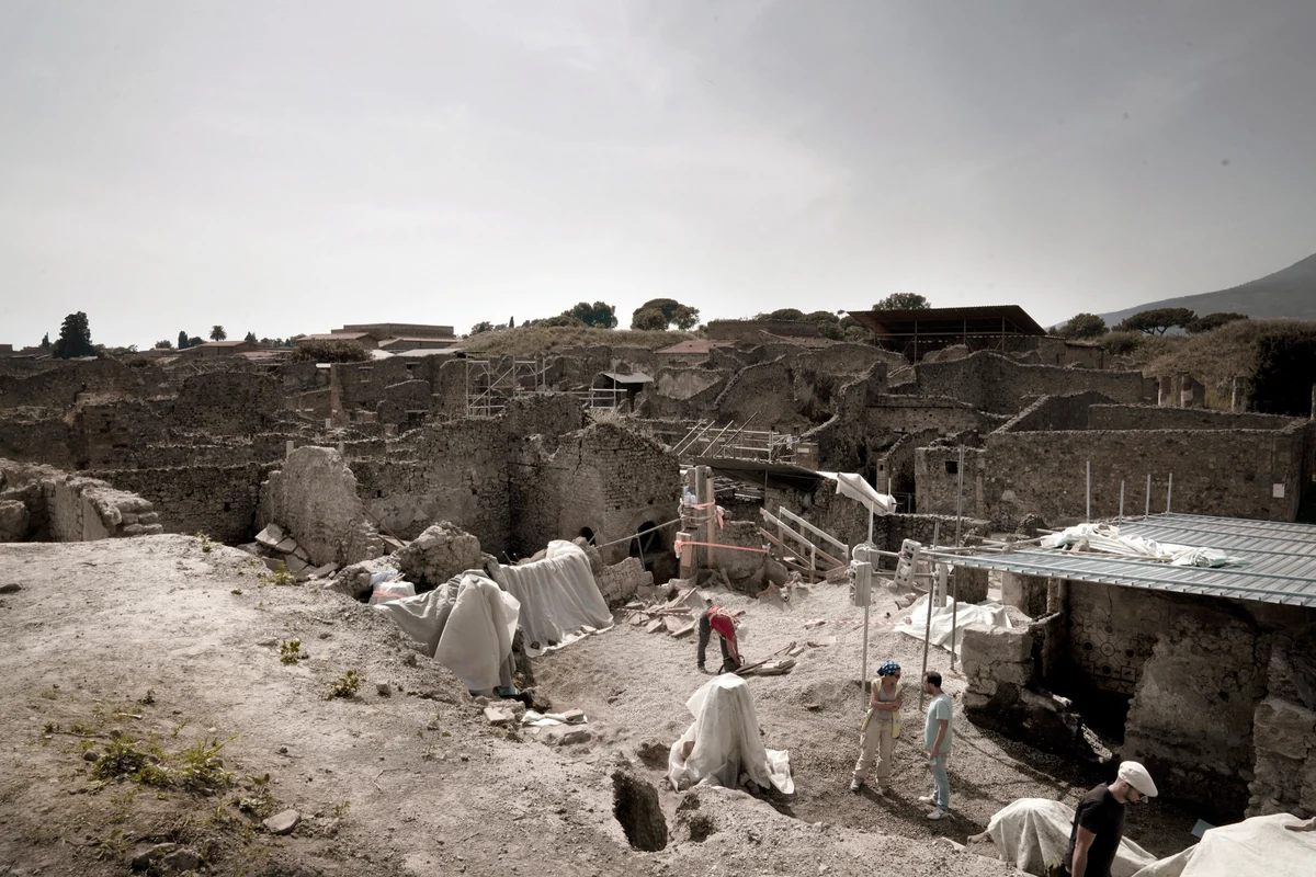 Im Jahr 79 n. Ch. wurde Pompeji nach einem Vulkanausbruch unter einer meterhohen Decke aus Vulkanasche und Bimsstein verschüttet. Erst im 18. Jahrhundert begannen Ausgrabungen, die bis heute andauern.
