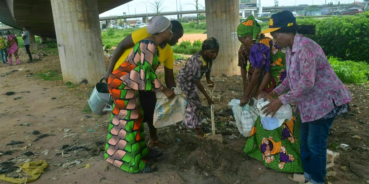 Gemeinsam mit einer Gruppe von Frauen hat sie in Oworonshoki begonnen, unter einer Stadtautobahnbrücke Tomaten, Kurkuma, Wassermelonen und Chili anzubauen. Das geschieht in Plastiksäcken, um die Bewässerung einfach zu halten. Erfahrung im Gemüseanbau hat keine von ihnen. Alle eint die Hoffnung, mittelfristig weniger für Lebensmittel auszugeben. Sie haben zusammengelegt, um Gießkannen, Saatgut und Säcke zu kaufen. „Die Regierung unterstützt uns doch nicht. Wir müssen selbst etwas tun.“