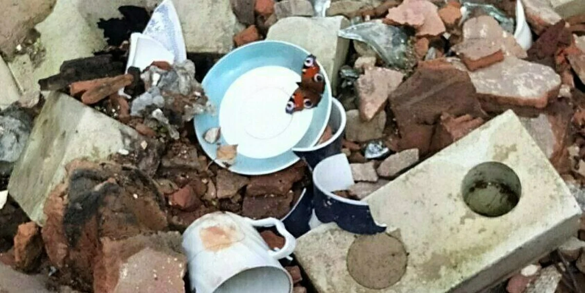 Nachdem wir mit den Aufräumarbeiten für den Tag fertig sind, macht die Besitzerin ein Foto von uns. Wir sollen uns dahin stellen, wo einmal ihr Herd gestanden hat, das Herzstück ihres Hauses. Sie bittet uns dann, statt „Cheese“ „Herd“ auf Ukrainisch zu sagen. Ich höre, wie unsere Herzen brechen, als wir für das Foto posieren. Ich bin mir sicher, dass wir traurig lächeln.
