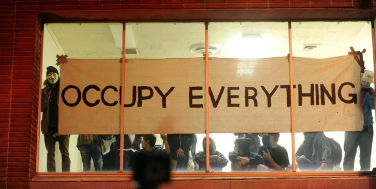 Doch die Stadt steht an diesem Mittwoch nicht still. Nachdem ein 24-jähriger Demonstrant durch ein Polizeigeschoss einen Schädelbruch erlitt, hat Occupy Oakland Flugblätter verteilt, auf denen stand: "Liberate Oakland. Shut down the 1 %." Eine junge Besetzerin verliest den Streikaufruf an der Ecke Broadway und Telegraph Avenue. Im Jahr 1946, als 100.000 Beschäftigte die Stadt für zwei Tage lang still legten, war diese Straßenkreuzung das Epizentrum der Bewegung.