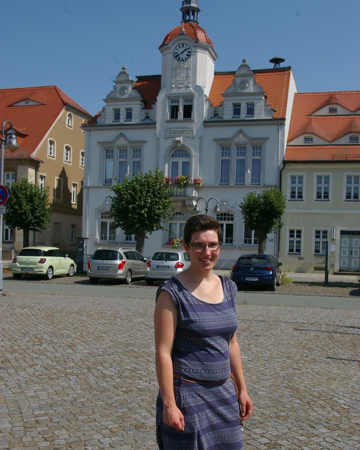 Im Rathaus erzählt sie vom ehemals schlechten Ruf der nur 2.300 Einwohner zählenden Stadt im „schwarzen Dreieck“ von Braunkohle und Kraftwerken. Draußen sollte man zu DDR-Zeiten besser keine Wäsche aufhängen. Manche erkannten an der Konsistenz des Rußes, aus welcher Richtung er anwehte.