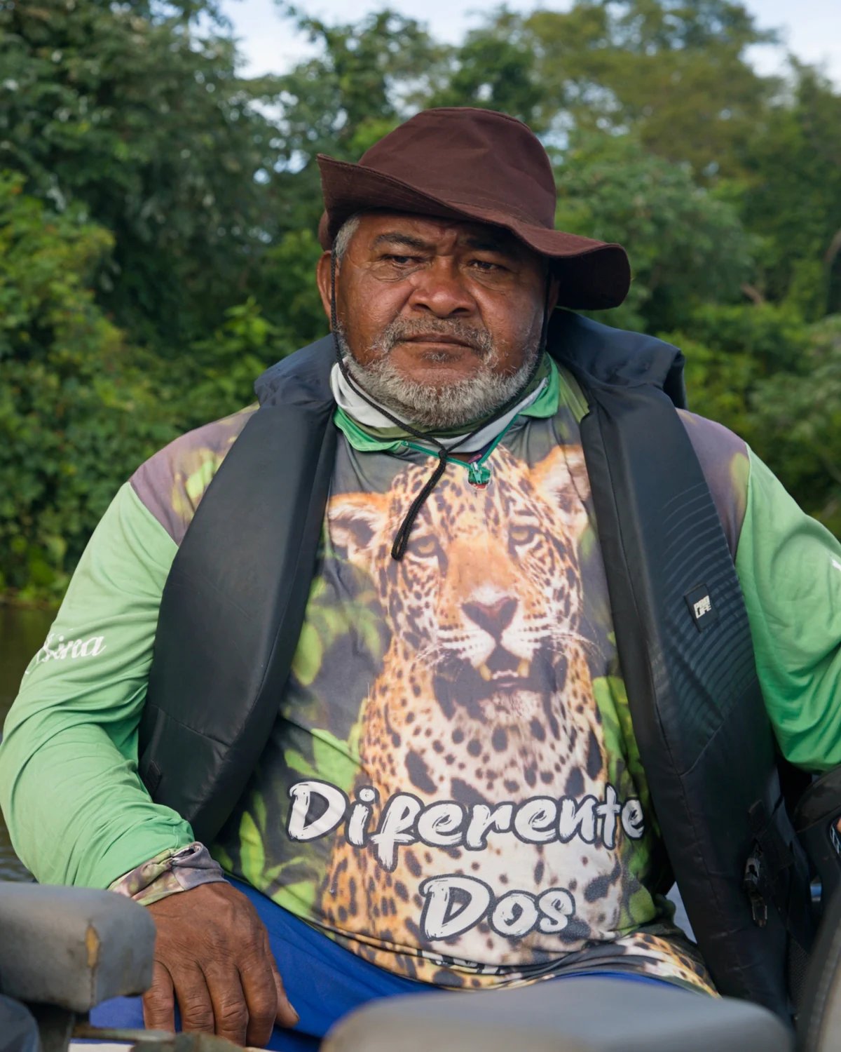 Wenn Oscar de Morais nicht gerade Jaguare sucht, findet man ihn in seinem Hausboot am Ufer des Rio São Lourenço. Dort sitzt er unter einem Moskitonetz auf zwei gestapelten blauen Plastikstühlen und schaut brasilianische Seifenopern, während ihm ein Ventilator frische Luft zuweht. Bis ihn jemand fragt, ob er ihm die Jaguare zeigen könne. Dann weiten sich die Augen in seinem großen, runden Gesicht, das sonst so grimmig scheint, und er beginnt zu grinsen.