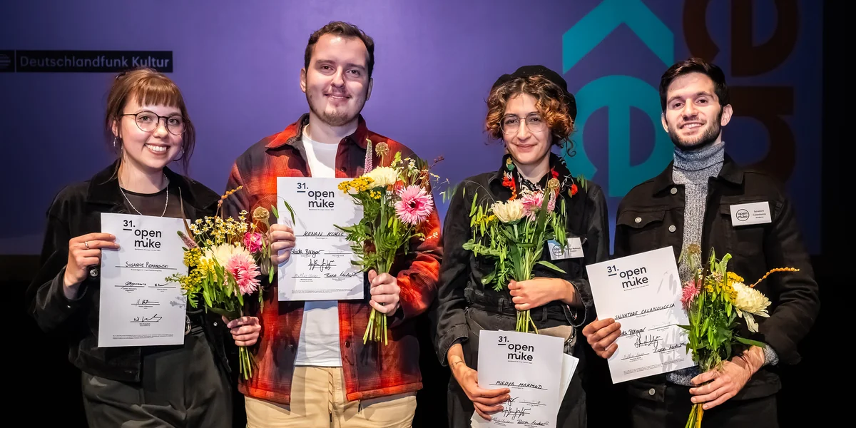 Die Hauptjury, bestehend aus Shida Bazyar, Senthuran Varatharajah und Anja Zag Golob, kürte am Ende drei Gewinner*innen: Salvatore Calanduccia mit seinem christlich-kitschigen „Marta Dei“, Kenan Kokić mit seiner sogartigen Erzählung „Parkbankgroßeltern“ und Miedya Mahmod. Drei Autor*innen, die als weitestgehend unbekannt gelten müssen. Aber genau darum geht es dem Open Mike ja auch, er will Türöffner sein für junge Stimmen. Für viele ist es der erste Kontakt mit dem Literaturbetrieb.