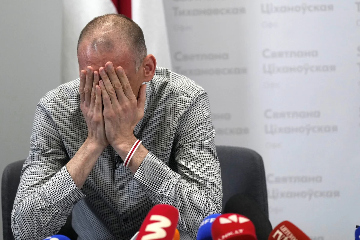 Ein hagerer, ausgezehrter Mann mit einem breiten Lächeln tritt in einem Konferenzsaal in Vilnius ans Mikrofon. Innerhalb einer Minute ist er von Tränen überwältigt. Es ist Sergei Tichanowski, ehemaliger Präsidentschaftskandidat in Belarus und Ehemann der im Exil lebenden Oppositionsführerin Swetlana Tichanowskaja. Nach fünf Jahren in einem belarussischen Gefängnis kann er an diesem Sonntag zum ersten Mal wieder vor die Öffentlichkeit treten.