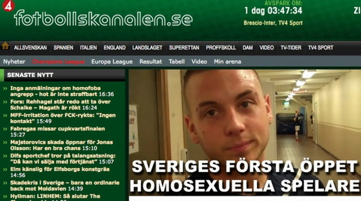 Schwedens erster Fußballpromi hatte sich als schwul geoutet. In einem Interview mit der Fußballzeitschrift Offside hatte Anton Hysén, Spieler beim Göteborger Zweitdivisionsklub Utsiktens BK als erster von 600 männlichen schwedischen Berufsfußballern diesen "willkommenen und mutigen Schritt" (Göteborgs-Posten) getan.