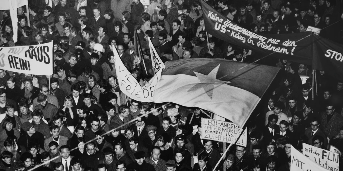 Der Blick der westdeutschen 68er-Bewegung auf den Vietnamkrieg war geprägt von einem bemerkenswerten Entwicklungsprozess: Die erste Phase lässt sich unter der Losung „Frieden für Vietnam!“ zusammenfassen. Die Studierenden gingen zunächst „nur“ auf die Straße, damit das fürchterliche Gemetzel, das die Fernseher seit 1967 auch in Farbe in jeden Haushalt übertrugen, endlich aufhört.