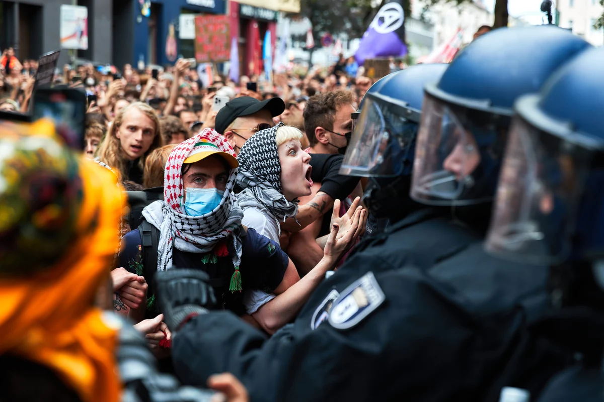 Düsberg ist einer der Initiator*innen des offenen Briefs und hat vor Gericht Personen verteidigt, die wegen der Parole angeklagt waren. „Wir verstehen nicht, warum die Kriminalisierung trotzdem ungebrochen weitergeht“, kritisiert er mit Blick auf das Vorgehen der Polizei bei Demonstrationen in den vergangenen Wochen. „Das ist nicht mehr tragbar und sorgt für ein unnötig hohes Eskalationspotenzial.“ Laut Düsbergs Schätzung sind an Berliner Gerichten noch mehrere Hundert Verfahren wegen des Slogans anhängig.