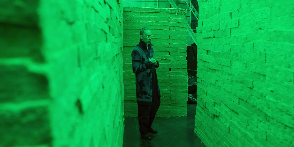 Die Grenze erkundet Jörg Laue in der Performance „Green Line“ in den Uferstudios. Er erzählt die Geschichte präzise, ungemein detailverliebt und mit einer Ruhe, die dem Atem der Geschichte auch angemessen ist. Den größten Raum des Heizhauses in den Uferstudios lässt er durch eine graue Wand durchschneiden. Sie ist aus Steinwolle gebaut, einem grau-schwarzen Material, das zu ziegelähnlichen Quadern geformt ist und Schicht um Schicht in die Höhe wächst.