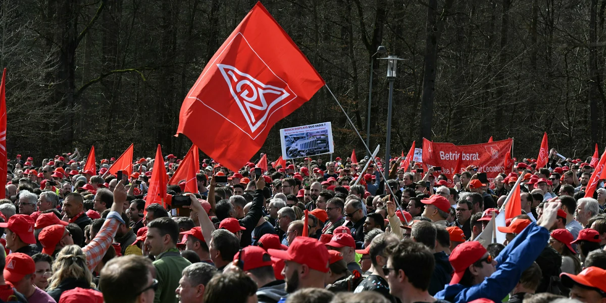 Trillerpfeifen und rote Fahnen: Mitarbeiter des Technologiekonzerns Bosch haben am Mittwoch gegen ihren Arbeitgeber protestiert. Der Betriebsrat und die Industriegewerkschaft Metall hatten zu einem bundesweiten Aktionstag aufgerufen. Bosch will zahlreiche Stellen streichen, etwa 3.000 Jobs sind bis 2027 betroffen.