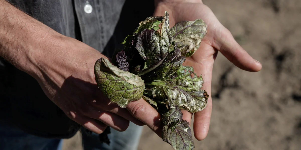 Erst eine Woche nach dem Sturm bemerkten Hahn und seine Kollegen, Judith Taschenmacher und Roman Best, dass mit vielen ihrer Radieschen, Rettichen und Rucolapflanzen etwas nicht stimmte: Sie bekamen erst gelbe, dann braune Blätter, schließlich wurden sie welk und gingen ein.