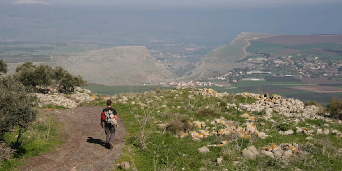 3. Tag: Vom Kibbuz Lavi zum Moschaw Arbel: Bei strahlendem Sonnenschein sind die Hörner von Hittim ein wunderbares Etappenziel für den nächsten Morgen. Sechs Kilometer von Tiberias und sehr nahe an Lavi gelegen, bietet der kleine Berg und Vulkanrest einen wunderbaren Blick über den gesamten Jesuspfad: Den Berg Arbel, den See Genezareth und Nazareth sowie einen guten Blick auf den zuweilen schneebedeckten Berg Hermon weit im Norden in den Golanhöhen an der Grenze zum Libanon und zu Syrien. Bekannt wurde der Ort wegen der Schlacht von Hattin 1187, als die Kreuzfahrer von dem muslimischen Heer unter Saladin geschlagen und zurück gedrängt wurden.