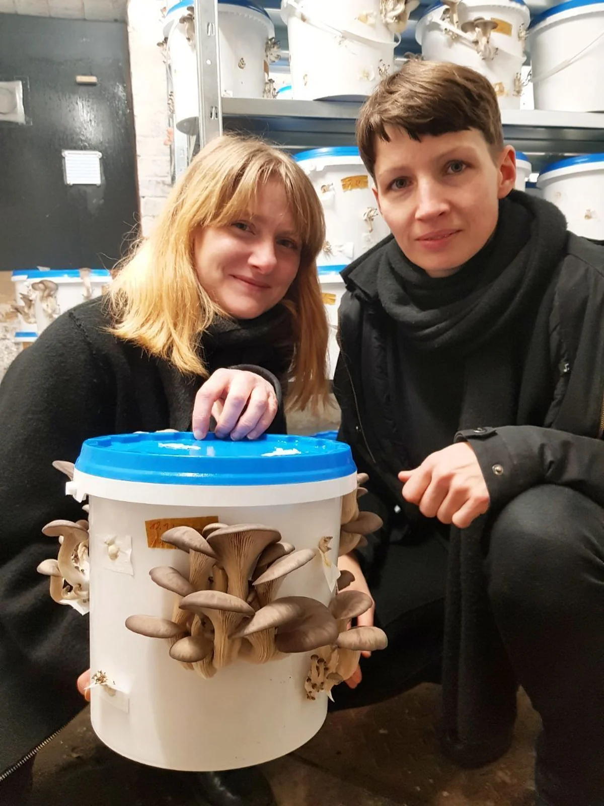 Wenn Katrin Becker und Johanna Quendt ins Kellergeschoss ihres Mehrfamilienhauses gehen, dann nicht, um ihre Fahrräder abzustellen oder die Gartenmöbel zu holen. Sie ernten Pilze. Seit ein paar Monaten züchten die beiden Frauen aus Kassel dort in einem dunklen Raum Austern-, Rosen- und Limonenseitlinge. Auf Metallregalen stehen mehrere Dutzend weiße Plastikeimer und transparente Tüten, aus denen kleine und große trompetenförmige Pilze sprießen.