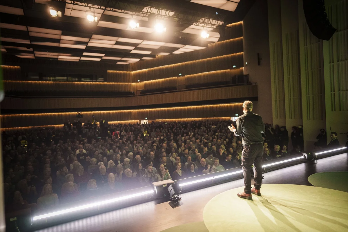 Habeck sagte, der Künstler, habe erst die Denker gelesen, dann in seiner mittlerweile zehnjährigen Arbeit als Landes- und Bundesminister Partei und Politik gelernt und außerdem vor Ort ständig richtige Menschen getroffen und gesehen, wie die drauf sind und wie sich das verändert. Dabei sei er aber nicht zynisch oder resigniert geworden, sondern versuche unverdrossen, seinen Idealismus konstruktiv mit der Realität zu verknüpfen.