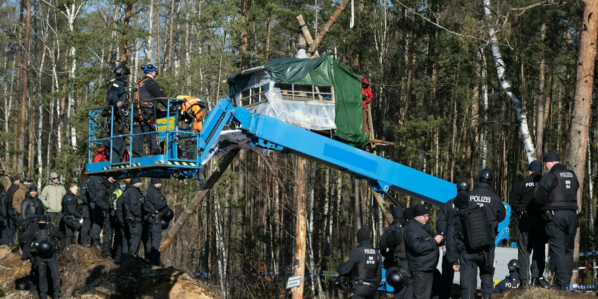 In Videos auf Twitter ist zu sehen, wie Polizist:innen Baumhäuser abreißen und Aktivist:innen mithilfe eines Krans aus Tripods holen. Eine Sprecherin der Polizeidirektion Görlitz sagte der taz, bisher sei eine Person in Gewahrsam genommen, weil sie Widerstand gegen Vollzugsbeamte geleistet habe und ihren Namen nicht sagen wolle.