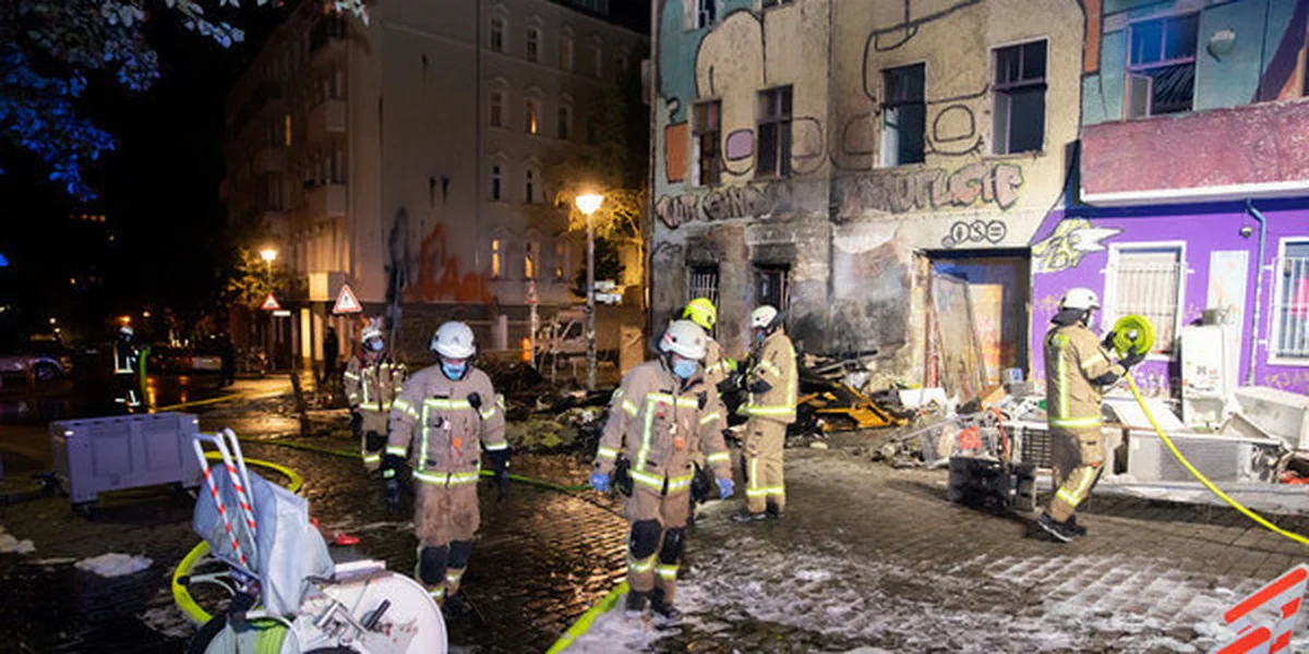 Am Mittwochabend war vor dem kürzlich geräumten „anarcha-queer-feministischen“ Hausprojekt in Friedrichshain ein Feuer ausgebrochen. 30 Feuerwehrkräfte rückten aus, um die Flammen zu löschen. Einem Sprecher zufolge brannten etwa 50 Kubikmeter Gerümpel vor dem Gebäude. Die Flammen gingen auch auf das Erdgeschoss über. Nach knapp zwei Stunden war das Feuer gelöscht.