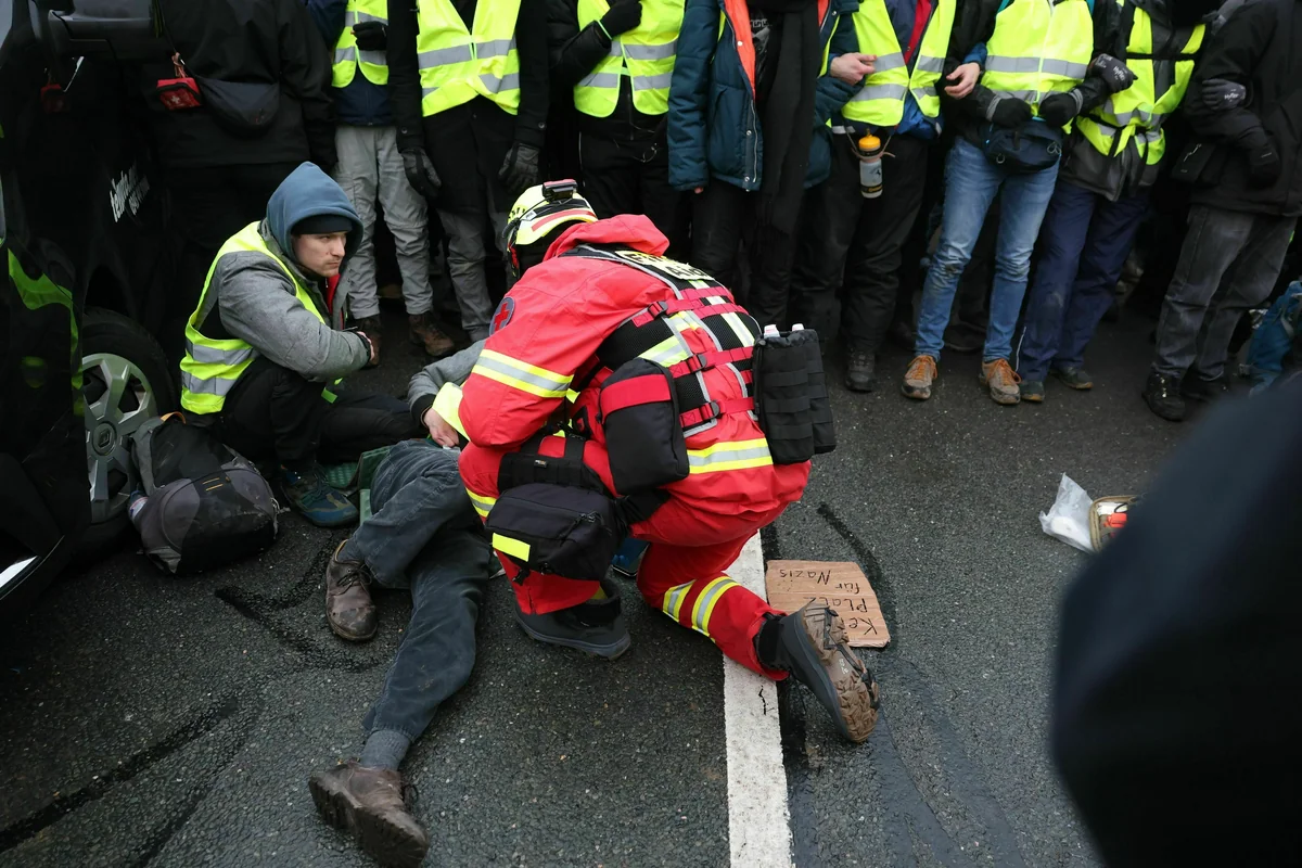 Trotz dieser Brutalität seitens der Beamten waren es nicht die Demonstrierenden, die den Verstand verloren haben und die eskalierten. Ein Polizist legte für einige Sekunden sogar seine Hand an die Dienstwaffe, nachdem ein besonders hartnäckiger Aktivist durch schiere Gewalt nicht aus der Blockadehaltung zu befreien war. Erst als ein weiterer Polizist auf seinen Kollegen einwirkte, trat der Mann einen Schritt zurück und nahm die Hand von der Waffe.
