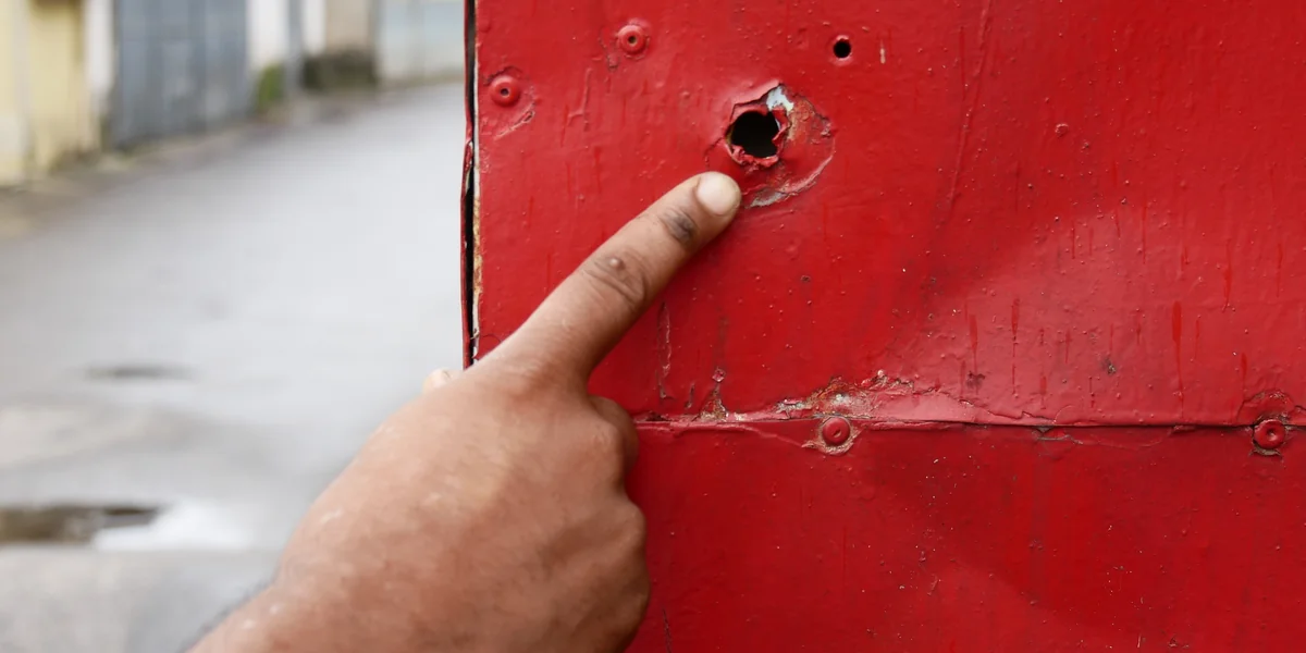 Derick Garcia war gerade auf dem Weg zur Arbeit, als die Schüsse losgingen. „Hierhinter habe ich mich versteckt“, sagt Garcia und geht auf einen ausrangierten Wagen zu. Die Wand ist durchlöchert. „Ich habe geschrien, dass ich Lehrer bin. Aber erst als ich meinen Rucksack mit den Büchern ausgeleert habe, haben sie aufgehört zu schießen.“ Das war vor neun Monaten.