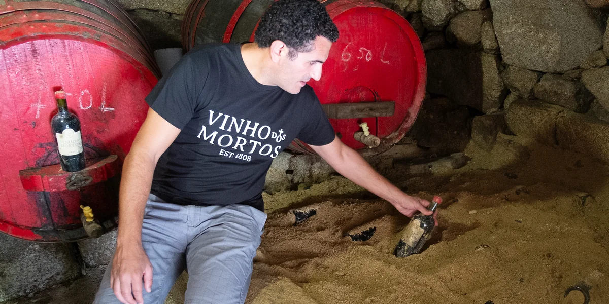 Bei Nuno Sousa Pereira reift ein Rotwein tief im Sandboden: der „Wein der Toten“. Dunkelheit und Temperatur geben ihm sein fruchtiges Aroma.