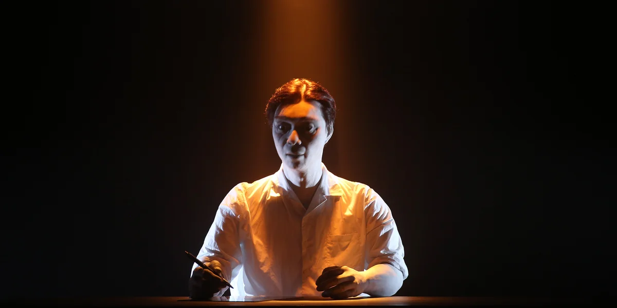 Mal wird der reale Stoff als Leinwand von einem sonst unmerklichen Windhauch bewegt, mal hängt er still, während das auf ihm zu sehende Bild in Bewegung gerät. Die gefühlte Hälfte des Abends lang bekommt man keinen klaren Blick auf dessen geheimnisvollen Protagonisten, den „mysteriösen Lai Teck“. Irgendwann beginnt man hinter dem halbtransparenten Stoff zumindest die Konturen einer überlebensgroßen Figur auszumachen.