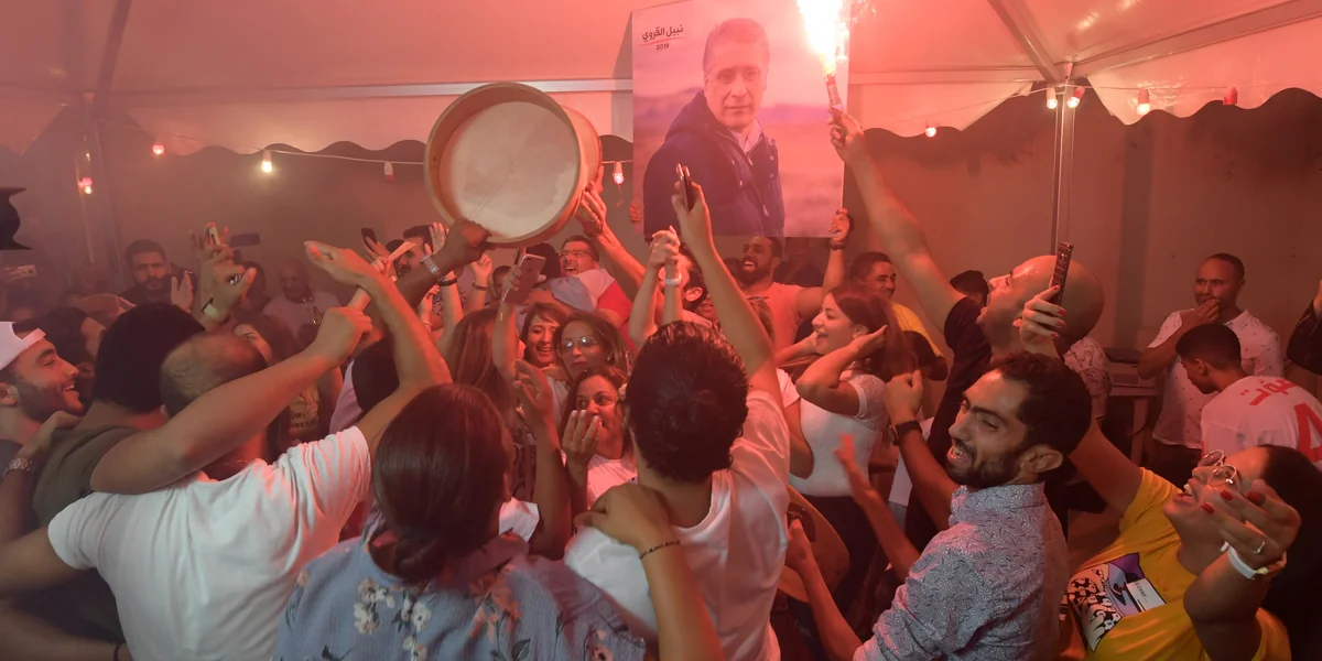 Völlig anders als bei Professor Saïed wird beim Kampagnenteam von Nabil Karoui gefeiert. Vor der Straße tanzen Kinder und Jugendliche zu lauter Musik aus Autoradios. Überall liegen Flyer mit Bildern von ihm, junge Frauen betreuen die Gäste, die Karouis Frau persönlich empfängt. Der Besitzer des Senders Nessma TV ist vor der Wahl in den Hungerstreik getreten und sieht sich als politischer Häftling. Auch internationale Diplomaten fragen sich, warum der „Berlusconi von Tunesien“ nach dreijähriger Ermittlungen wegen Steuerhinterziehung ausgerechnet wenige Wochen vor den Wahlen von einer Antiterroreinheit verhaftet wurde. Nach der Stichwahl im Oktober könnte er direkt aus der Gefängniszelle in den Präsidentenpalast einziehen.