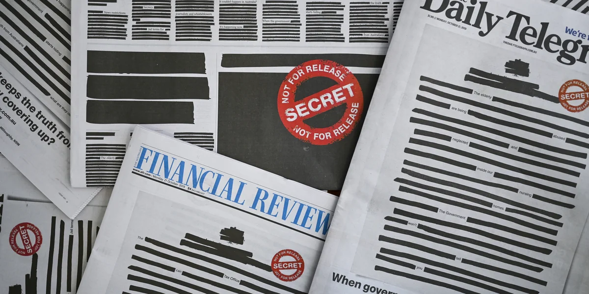 In Schwarz, mit einem roten Stempel, der „Geheim“ sagt: so präsentierte sich am Montag die Tageszeitung The Australian. Auch die Titelseiten der Konkurrenzblätter Sydney Morning Herald und Financial Revue zeichneten ein ungewohntes Bild. Statt der üblichen Schlagzeilen fanden Leser bloß schwarze Zensurbalken.