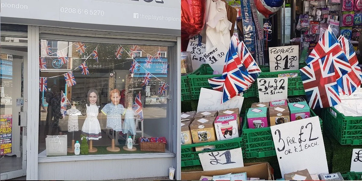 G oldene Porzellantellerchen aus der Royal-Collection mit „H&M“ für umgerechnet 56 Euro, Teebecher für 45 Euro. Küchenschürzen, Teetücher und Buttergebäck zum Zehnfachen des Normalpreises. Schaufenster mit Flaggen, Corgis, Masken von Meghan und Harry. Im edlen Mayfair wirbt sogar ein Juwelier mit einer Torte und Bildern des königlichen Paares.