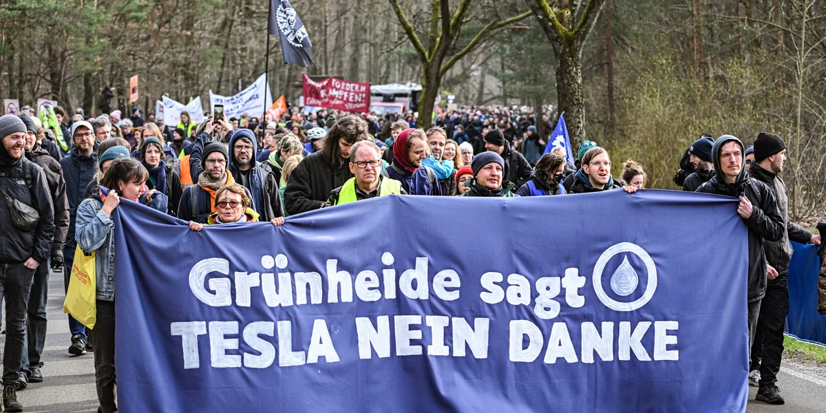 Seit Sommer 2021 produziert Tesla in Brandenburg mit mittlerweile 12.500 Mitarbeiter*innen E-Autos. Nun soll die Fabrik in einem Wasserschutzgebiet erweitert werden. Dafür müssten 100 Hektar Wald gerodet werden. Ende Februar stimmten zwei Drittel der Anwohner in einer Bürgerbefragung dagegen. Zusätzlich haben Aktivist:innen der Initiative „Tesla stoppen“ in dem betroffenen Waldabschnitt ein Baumhaus-Camp errichtet.