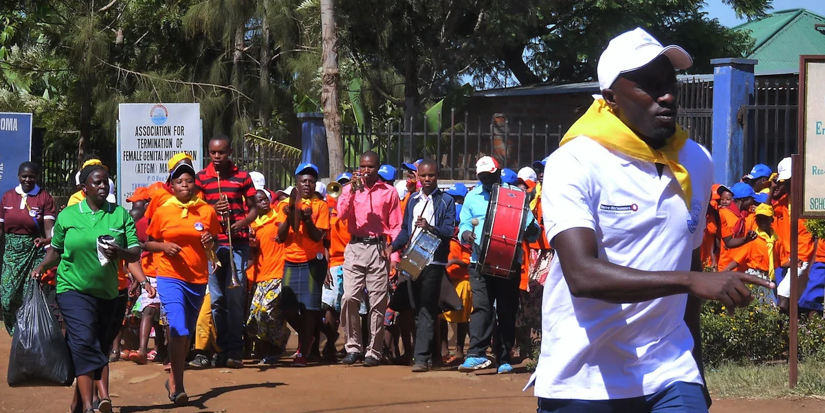 Fast 500 Mädchen in orangefarbenen Poloshirts kommen hüpfend und tanzend aus dem Tor der Sankt-Catherine-Laboure-Grundschule. Begeistert folgen sie einer kleinen Band, die fröhliche Musik spielt. Die Kolonne hat es nicht weit. Nach ein paar hundert Metern auf einer staubigen Straße gelangen sie auf eine große Wiese. Viele Gäste haben sich dort schon versammelt, um die Zeremonie für ihren Übergang vom Mädchen zur Frau zu feiern.