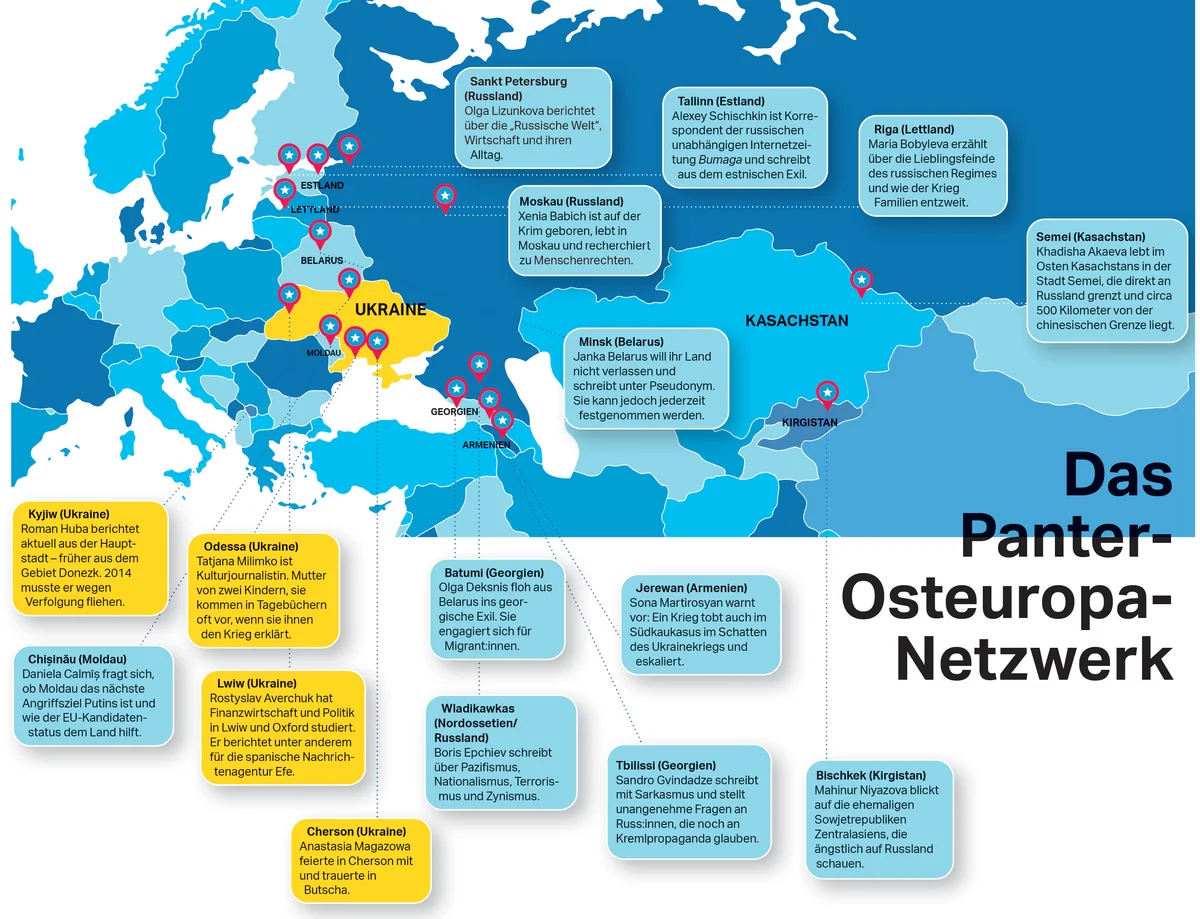 Die taz Panter Stiftung hat als Reaktion auf den russischen Angriffskrieg osteuropäische Journalist:innen in einem Projekt zusammengebracht.