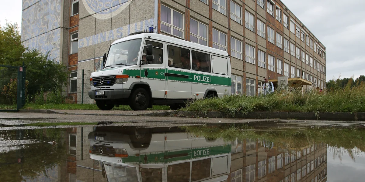 150 Polizisten stehen um die Schule