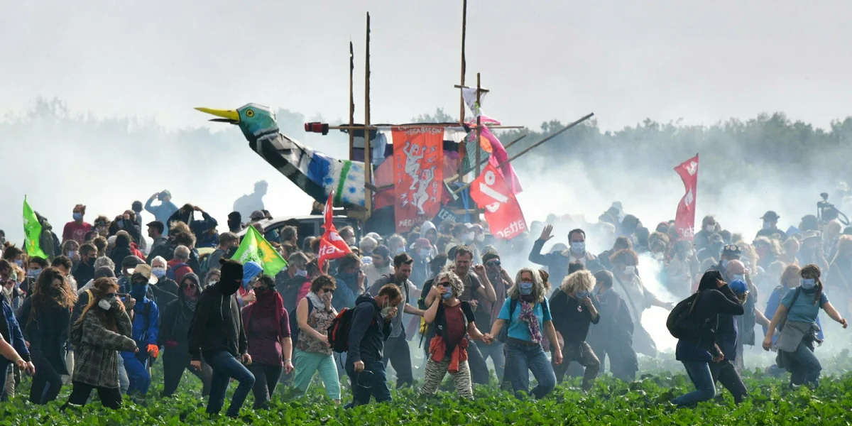 Die Kundgebung hatten Behörden wegen befürchteter gewaltsamer Auseinandersetzungen verboten. Dennoch kamen zwischen 4.000 und 7.000 Gegner*innen aus ganz Frankreich, unter ihnen Politiker*innen der Grünen (EELV) wie Yannick Jadot und Sandrine Rousseau. Die Polizeipräfektur hatte ein massives Aufgebot von mehr als 1.500 Ordnungskräften mit Einsatzfahrzeugen und fünf Hubschraubern bereitgestellt. Ihre Aufgabe sollte es sein, die Demonstrierenden daran zu hindern, auf das Baugelände vorzudringen und dieses zu besetzen.
