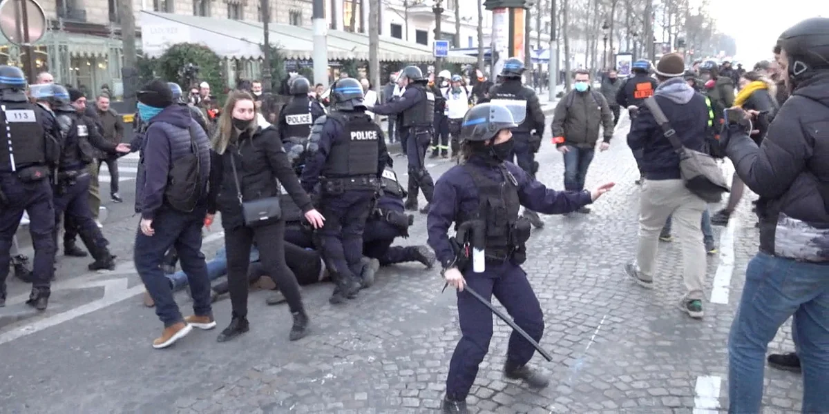 In Frankreich hatten Medien befürchtet, der Protest werde der Gelbwesten-Bewegung neuen Schwung geben. Wie diese hegen auch die Kritiker*innen der vermeintlich „repressiven“ Pandemiepolitik einen Groll gegen die „Eliten“ und speziell gegen Präsident Emmanuel Macron. In den Reihen der Unterstützer*innen der Konvois finden sich viele Ehemalige der Gelbwesten-Bewegung. Einer von deren Wortführern, Jérôme Rodrigues, der bei einem Polizeieinsatz ein Auge verloren hatte, wurde am Samstag auf dem Weg zu den Champs-Élysées präventiv festgenommen.