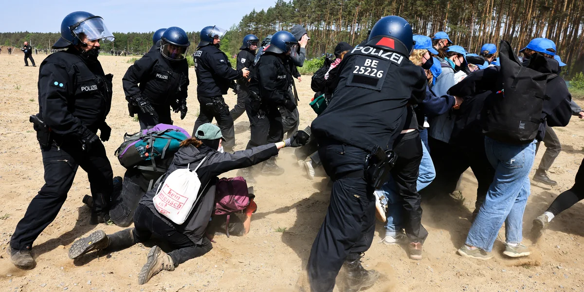 Protest gegen Tesla-Fabrik: Sturm auf Tesla-Gelände