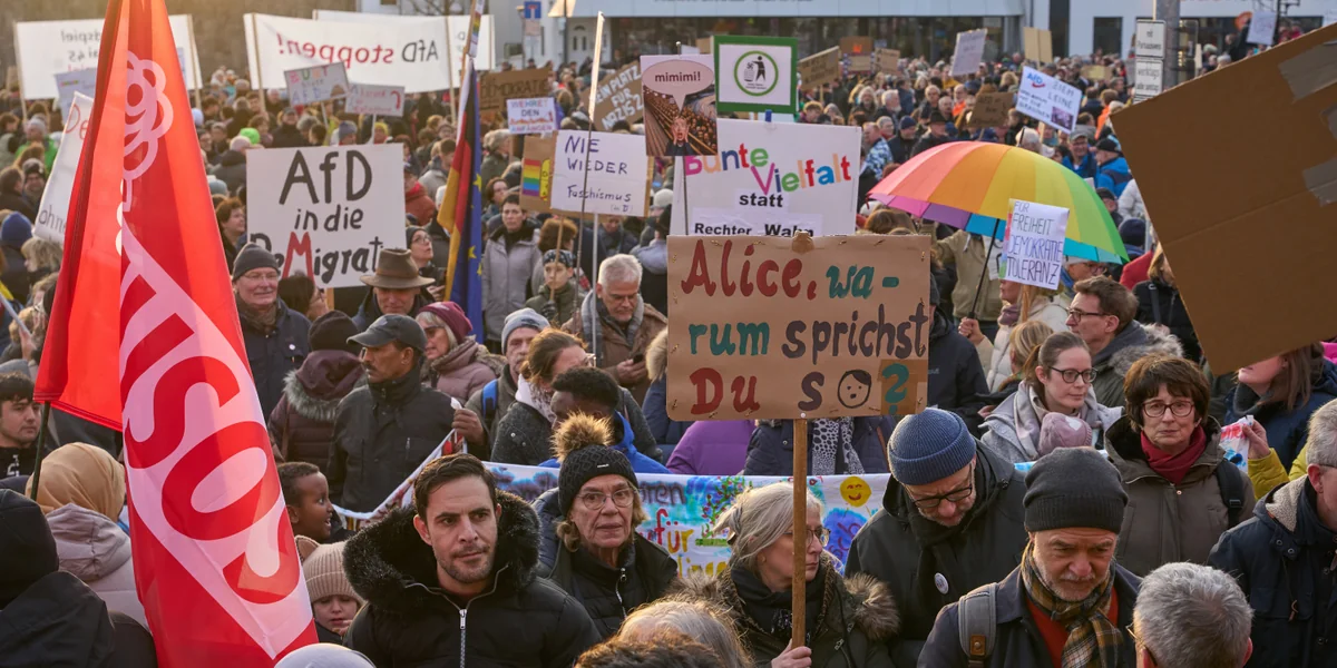 Es ist einer der ersten Auftritte Weidels seit dem Potsdamer Treffen von unter anderem AfD-Mitgliedern mit dem Rechtsextremisten Martin Sellner. Und in dieser Wagenburgstimmung braucht es nicht viel, um die eigenen Anhänger in der Halle in Begeisterung zu versetzen. Sie liefert ein Destillat ihrer Bundestagsrede aus der vergangenen Woche, wiederholt unter großem Applaus den Satz, die Ampelregierung hasse Deutschland, und vergleicht die Recherchemethoden der Investigativreporter von Correctiv erneut mit der Stasi.