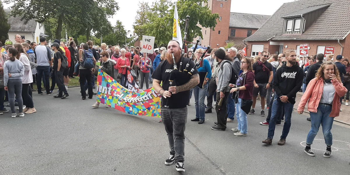 Im kleinen niedersächsischen Ort Schwagstorf demonstrierten Hunderte Menschen laut und friedlich gegen eine AfD-Veranstaltung.