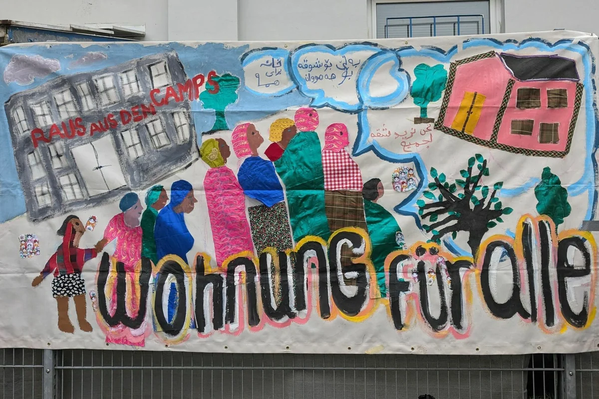 Bewohnende eines Camps für Geflüchtete in Harburg protestieren gegen miese Zustände. Bei einer Kundgebung kommt plötzlich jemand vom Träger vorbei.